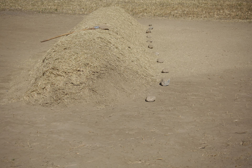 Winnowing is a five-minute video filmed in September 2015 in the Badakhshan region of Tajikistan. A man winnows wheat using a pitchfork and the wind to separate the grain from the stalk. Behind him, the Panj River. a tributary of the Amu Darya, forms the border with Afghanistan. The man’s repeated labor, projected in slow motion, emphasizes the Pamir culture’s ongoing self-sustaining life. Their living patterns have not changed much in centuries. The accompanying music by Abbey Lincoln and Max Roach adds a sense of timelessness and repetition to the scene. The video’s ethnographic style shows a far off place made closer. The idea is the opposite of globalization - a distant culture that remains intact makes the world a bigger place instead of a smaller one.